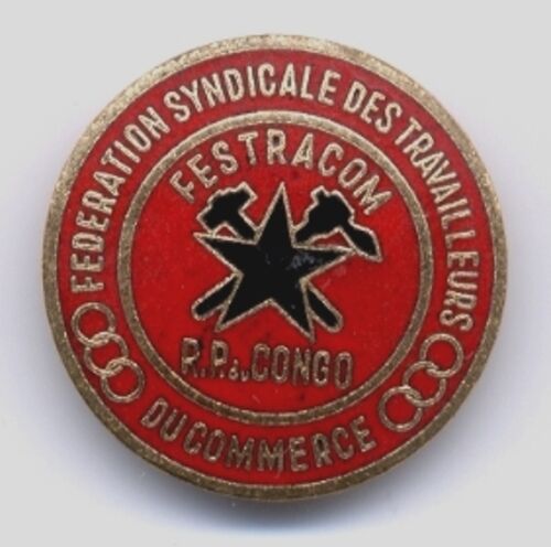 コンゴは1960年に独立するまでフランス領だったので、今日のバッジはフランス語で書かれている。 FEDERATION SYNDICALE DES TRAVAILLEURSとは、すなわち労働者組合にほかならない。 描かれた図柄は、ハンマーとクワであろう。赤地に黒い五角星が、いかに…