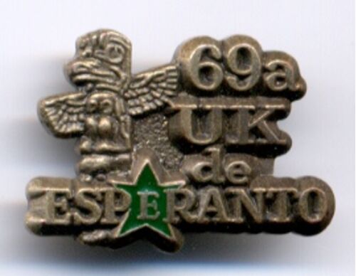 ワシのようなトーテムがちょっとかわいい、エスペラント第69回世界大会バッジ。 69回大会がどこで開催されたかというとカナダのバンクーバーで、1984年のこと。 このシンボルは、ネイティブカナディアンのトーテムをモチーフにしたのだろうか。 日本…