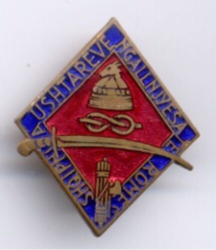 最近、左翼系のバッジが続いたので、たまにはファシスト関係のバッジでも紹介しよう。 スカンデルベグの兜とイスラム的な彎曲刀、そしてファシストのシンボルの斧。SHQIPERIAとは、アルバニアのこと。 アルバニアは1939年、ファシスト政権のイタリアに占…