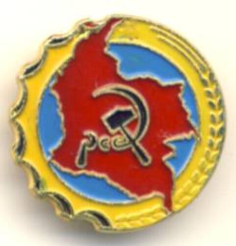 肖像の入ったバッジは、顔だけでしか判断できないので、文字情報がない未知の人物の場合、その特定はかなり困難だ。 では、こんなバッジはどうだろう? 今日の一枚は、国土らしいものと共産主義の槌鎌が描かれているバッジだ。そして、周囲は左側が歯車?、…