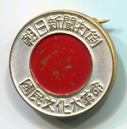 正直正体不明のバッジという他ないが・・・ 「朝日新聞打倒」というスローガンと中央の日の丸から、反朝日新聞の右派系団体のバッジと推定される。 だが、戸惑うのがその下の「国民文化大革命」。 なんなんだろうなあこれ。 文化大革命とあるからには、もちろん…